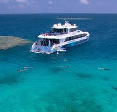 A Quicksilver coach will pick you up from your hotel for your transfer to Marlin Wharf Cairns, the departure point of your cruise. At 08:15am board Silverswift, a 29 metre catamaran designed for safety and comfort, to commence a full day cruise. Arrive at the first site by approximately 09:50am. Spend up to five hours of leisurely play, and visit 3 different sites at the Outer Barrier Reef to discover this underwater world. Adventure snorkellers can explore spectacular coral formations and underwater gardens awash with vibrantly coloured marine creatures. Locations vary with the conditions however each site is chosen for visual impact, ecological diversity and the challenge of discovery. Snorkel briefs at each site and a guided free snorkel tour are included in your day. After the water activities, enjoy lunch onboard. Bar facilities are available to purchase drinks. Cruise concludes at approximately 04:30pm, at which time hotel drop offs will commence.